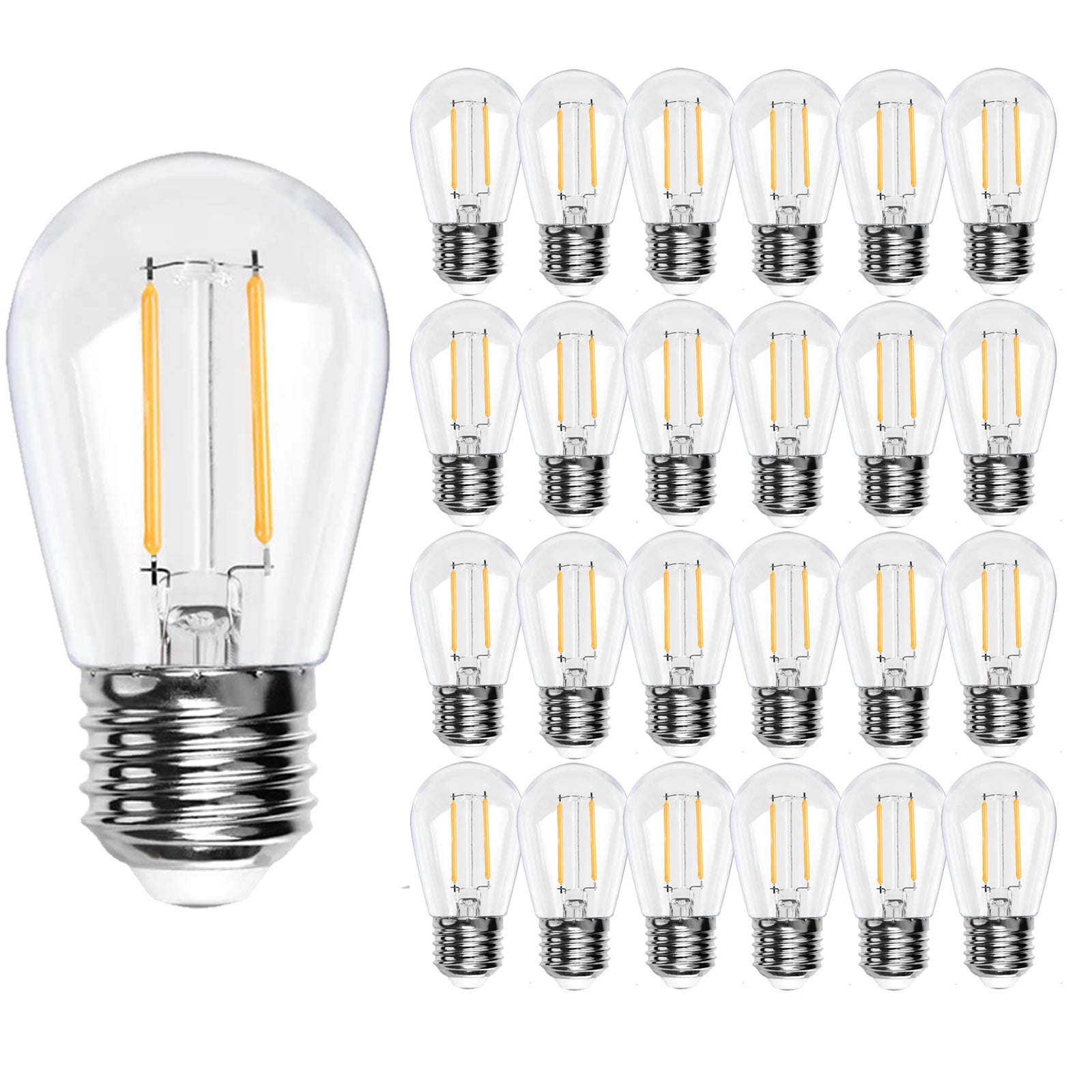 25 Pack 2W S14 LED Bulbs for Outdoor String Lights Replacement, E26 Medium Screw Base 2200K Warm White Plastic Shatterproof & Waterproof LED Edison Bulb for Chandeliers, Ceiling Fan