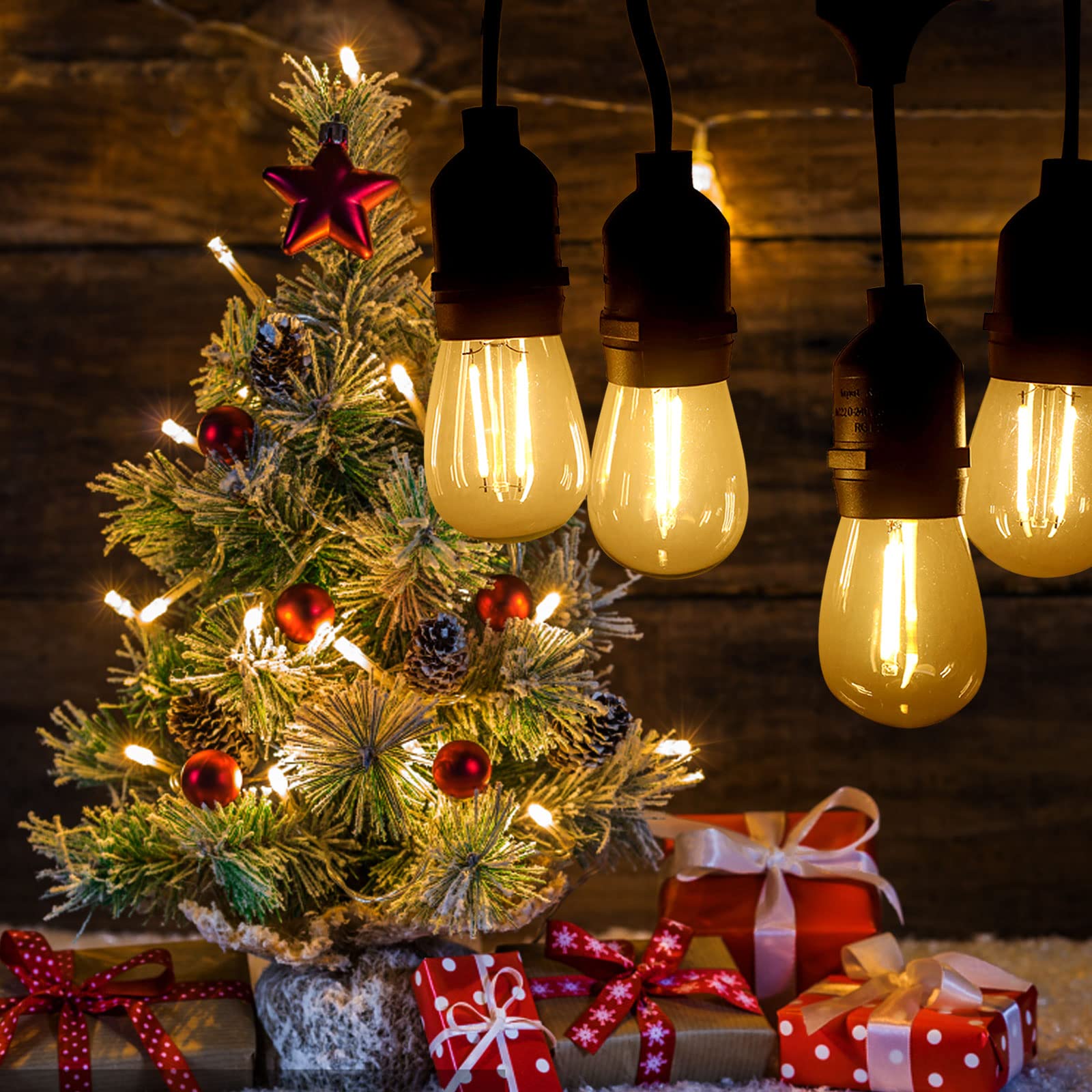 - 💡【Energy Saving】 The power of each bulb is 2W, s14 bulb can save you 90% of electricity bills compare to 10W incandescent lamps. The outdoor light string is designed to create the perfect lighting style that adds exquisite and visually pleasing ambiance to any indoor or outdoor space at any time. It can turn the exterior of your house or yard into a club or romantic cafe.