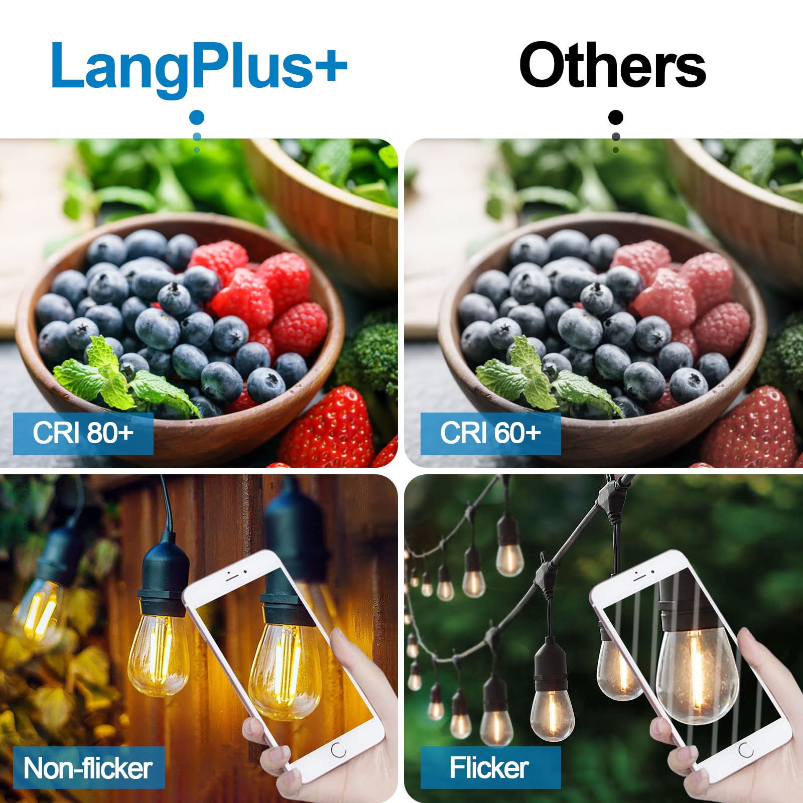 LangPlus+ 15 Pack S14 LED Filament Bulbs AC 220-240V, E27 Base LED Light Bulbs, 2W 2700K Warm White Edison Bulb for Outdoor String Lights Replacement