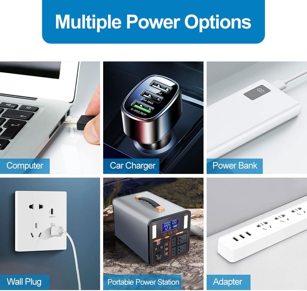 💡USB Powered Outdoor String Lights – Standard USB plug fits any DC 5V adapter, power bank, or laptop for instant lighting—no need to pre-charge like solar lights. These LED outdoor string lights give you reliable illumination anytime, anywhere, whether for camping, RV trips, or backyard gatherings.